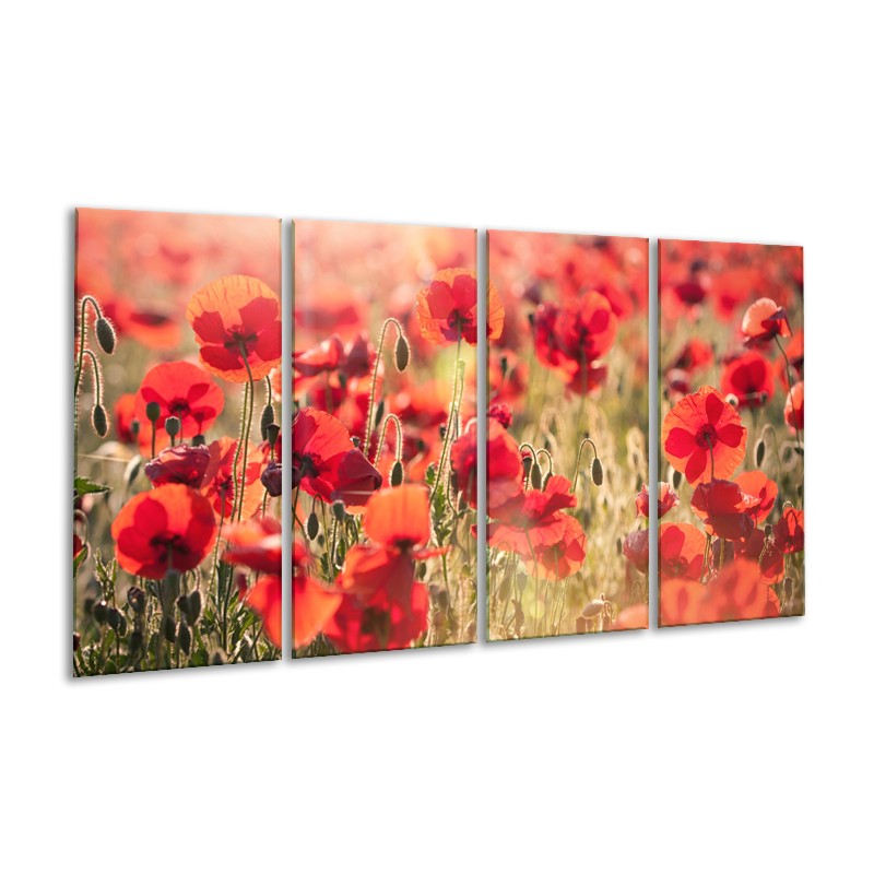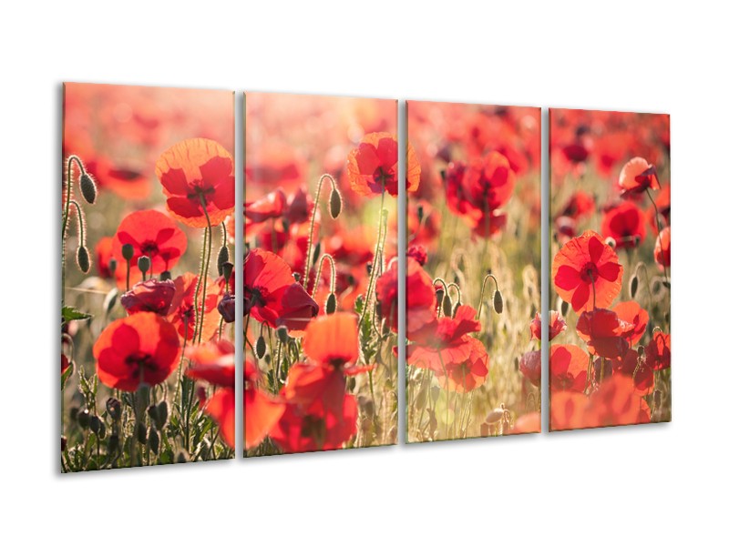 Canvas Schilderij Klaproos, Bloemen | Rood, Bruin | 160x80cm 4Luik