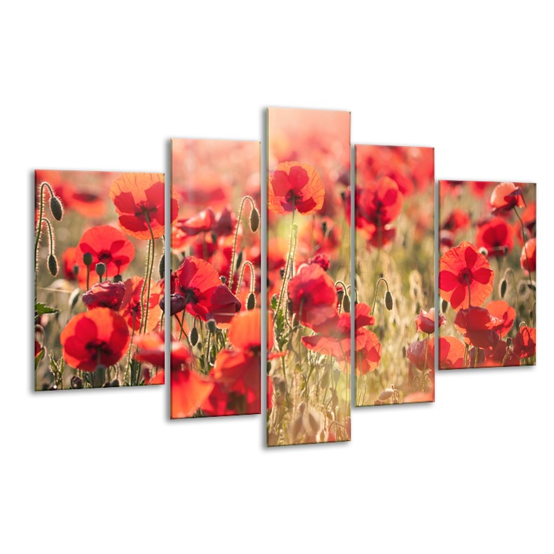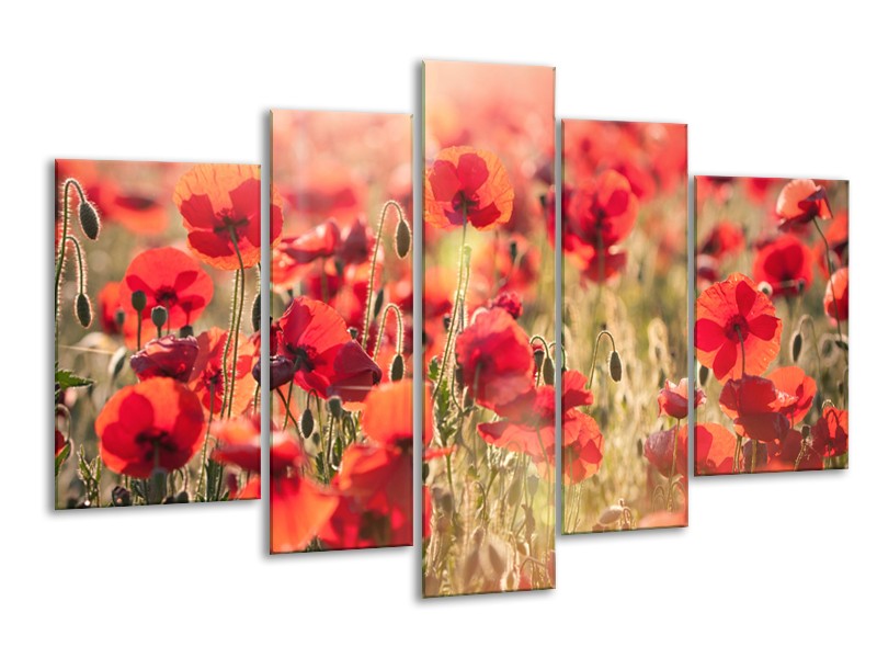 Canvas Schilderij Klaproos, Bloemen | Rood, Bruin | 170x100cm 5Luik