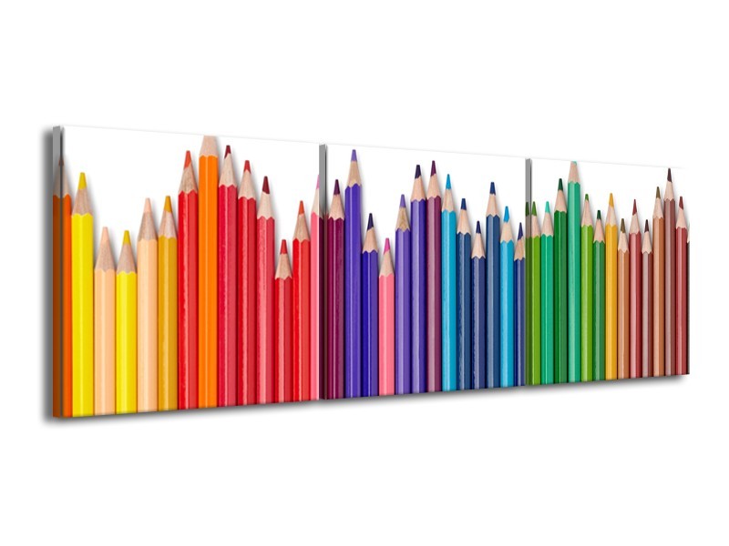 Canvas Schilderij Kleurpotloden | Wit, Rood, Blauw | 150x50cm 3Luik