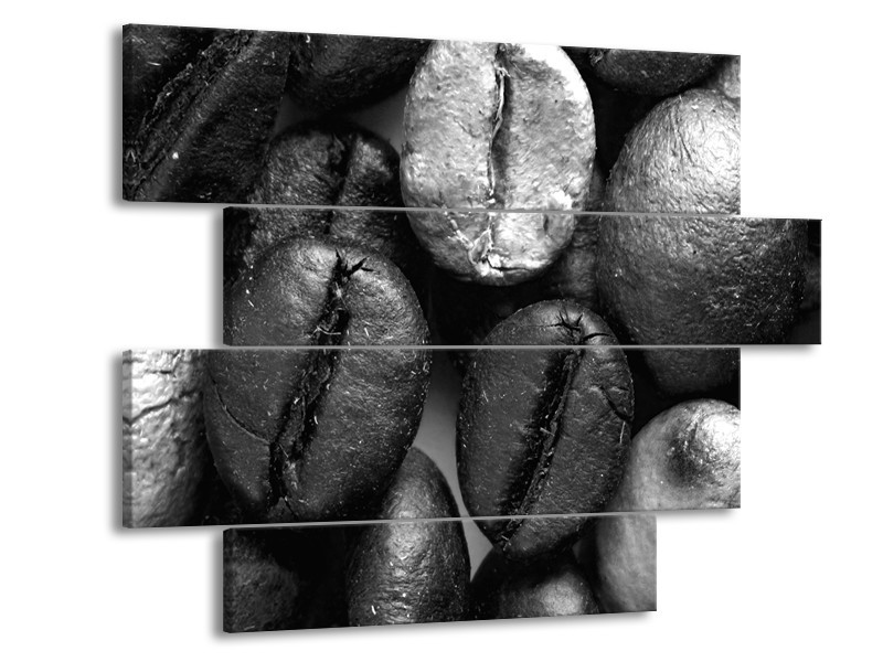 Canvas Schilderij Kloffiebonen, Keuken | Grijs, Zwart | 115x85cm 4Luik