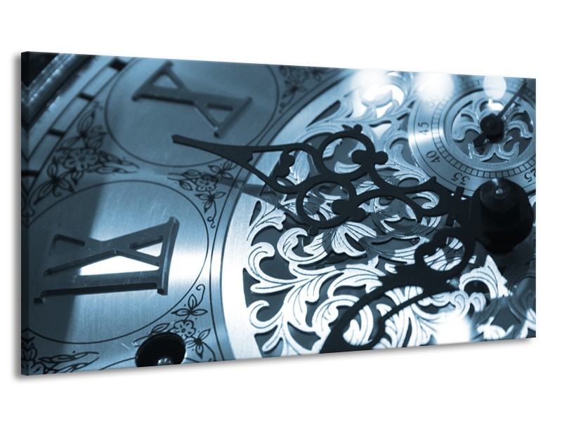 Canvas Schilderij Klok | Blauw, Grijs, Wit | 170x90cm 1Luik