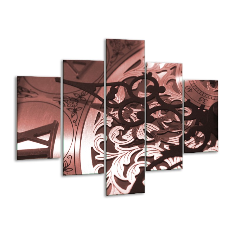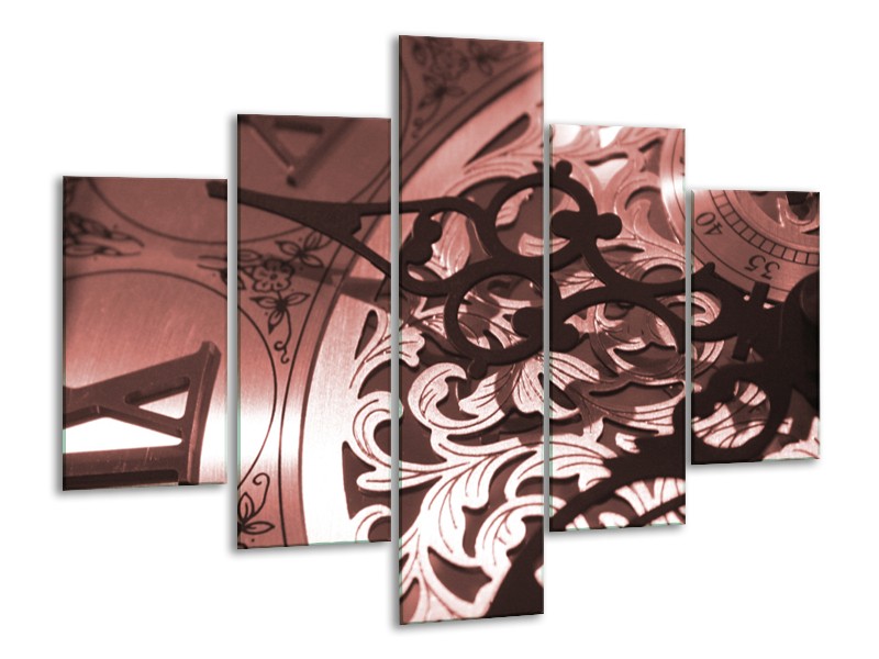 Canvas Schilderij Klok | Bruin, Rood | 100x70cm 5Luik
