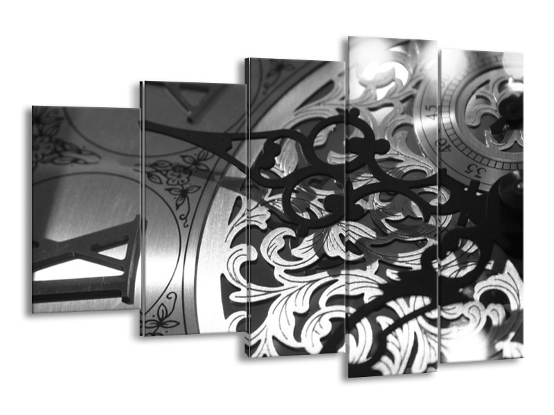 Canvas Schilderij Klok | Grijs, Zwart | 150x100cm 5Luik