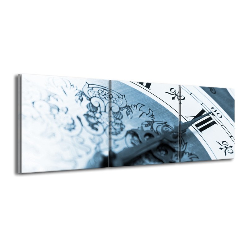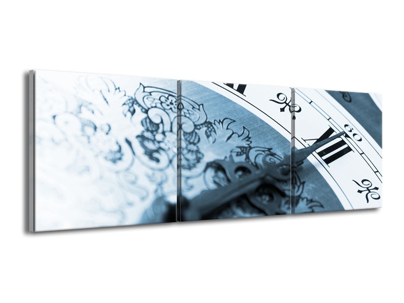 Canvas Schilderij Klok, Keuken | Blauw, Grijs | 150x50cm 3Luik