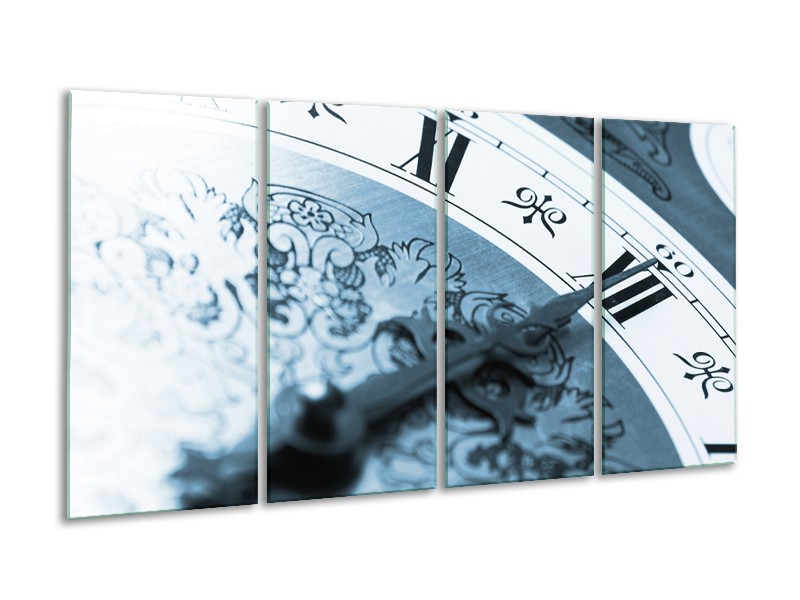 Canvas Schilderij Klok, Keuken | Blauw, Grijs | 160x80cm 4Luik