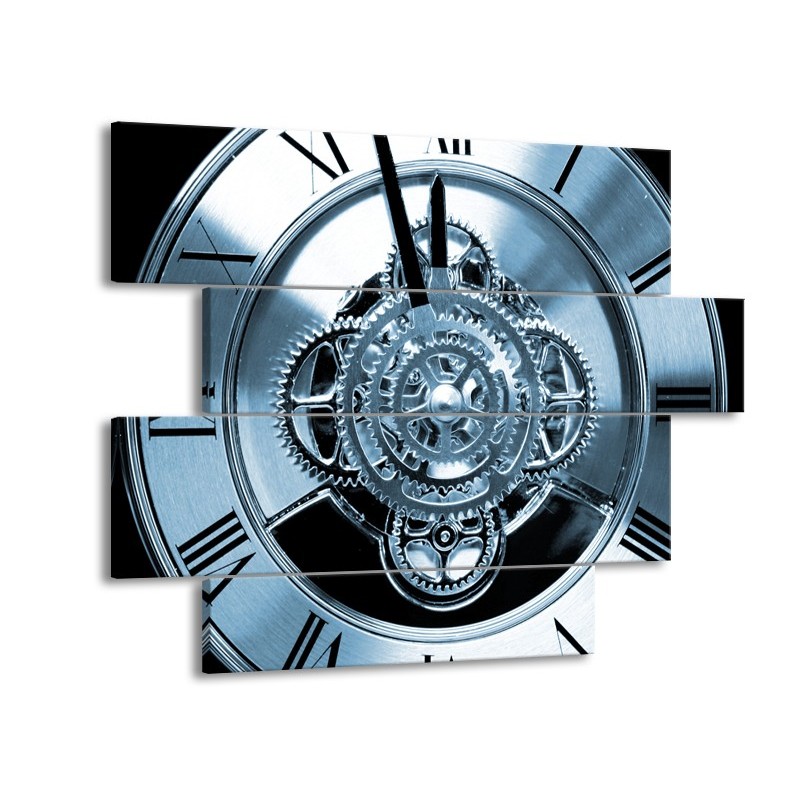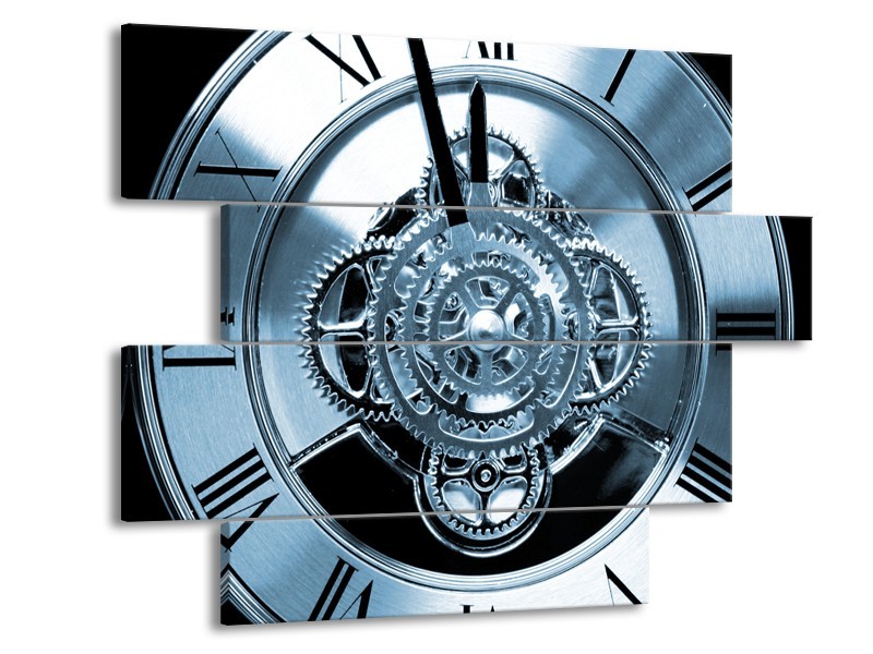 Canvas Schilderij Klok, Keuken | Blauw, Grijs, Zwart | 115x85cm 4Luik