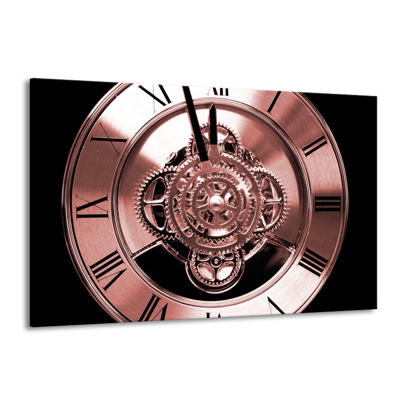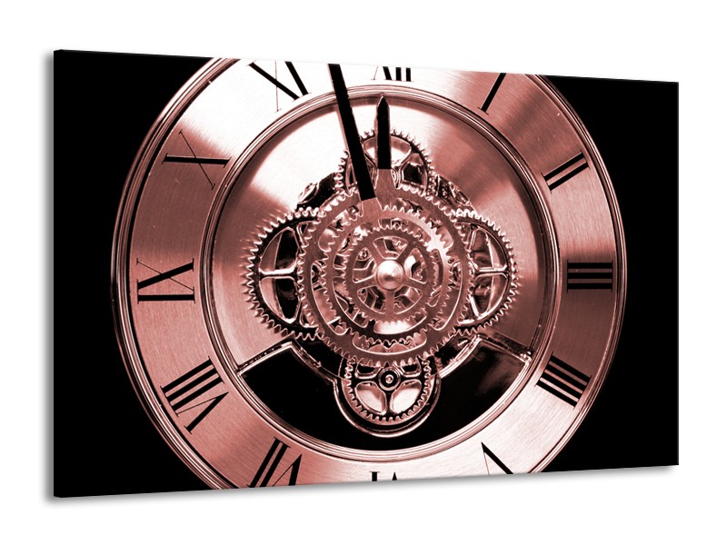 Canvas Schilderij Klok, Keuken | Bruin, Rood, Zwart | 140x90cm 1Luik