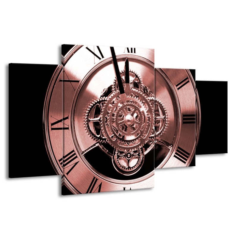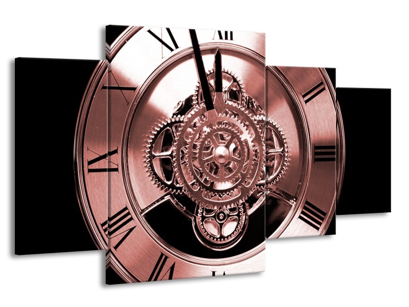 Canvas Schilderij Klok, Keuken | Bruin, Rood, Zwart | 160x90cm 4Luik