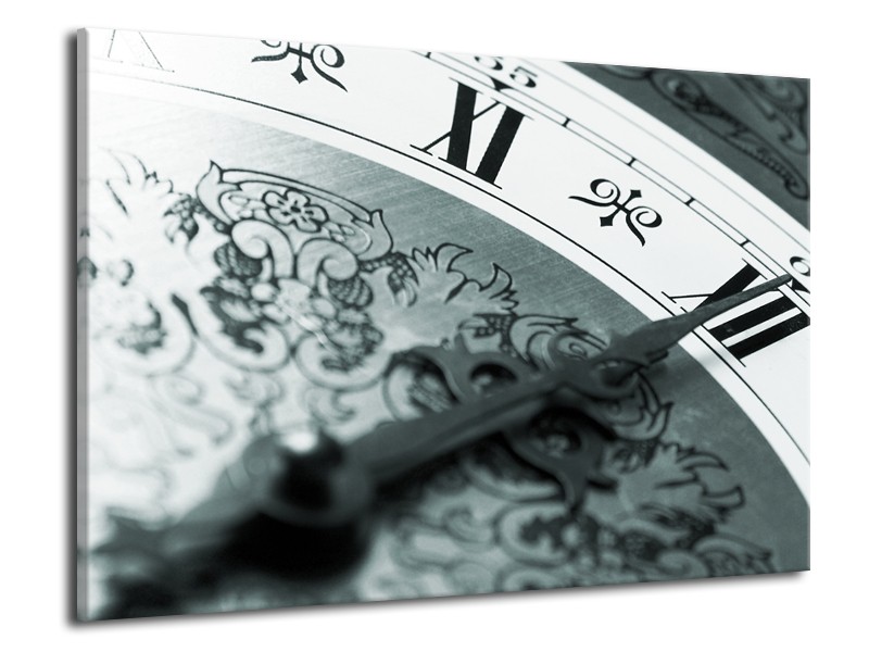 Canvas Schilderij Klok, Keuken | Grijs, Zwart, Groen | 70x50cm 1Luik