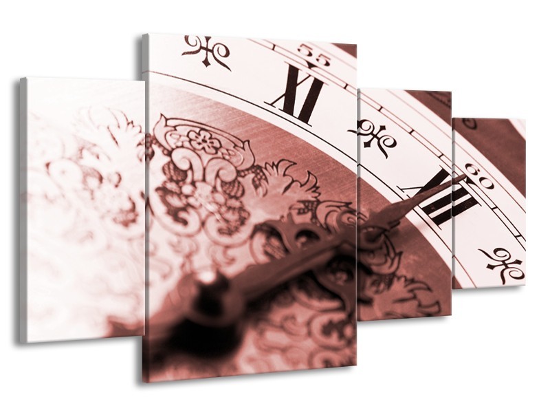 Canvas Schilderij Klok, Keuken | Rood, Bruin | 160x90cm 4Luik