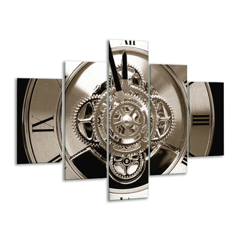 Canvas Schilderij Klok, Keuken | Sepia, Bruin, Zwart | 100x70cm 5Luik