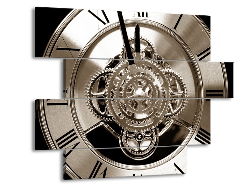 Canvas Schilderij Klok, Keuken | Sepia, Bruin, Zwart | 115x85cm 4Luik