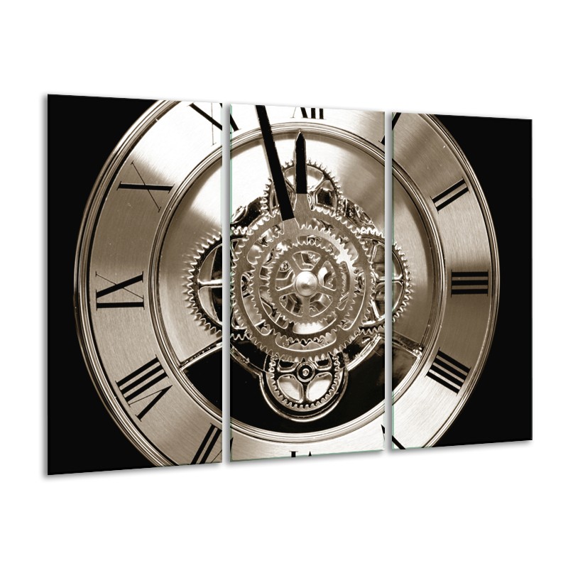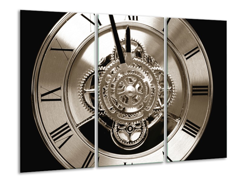 Canvas Schilderij Klok, Keuken | Sepia, Bruin, Zwart | 120x80cm 3Luik