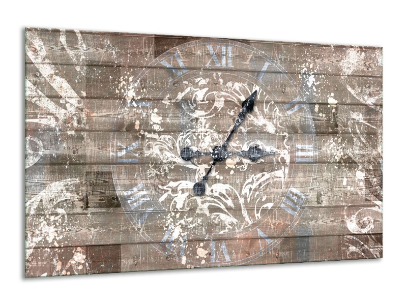 Canvas Schilderij Klok, Landelijk | Grijs, Crème, Bruin | 120x70cm 1Luik