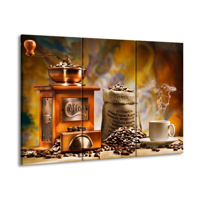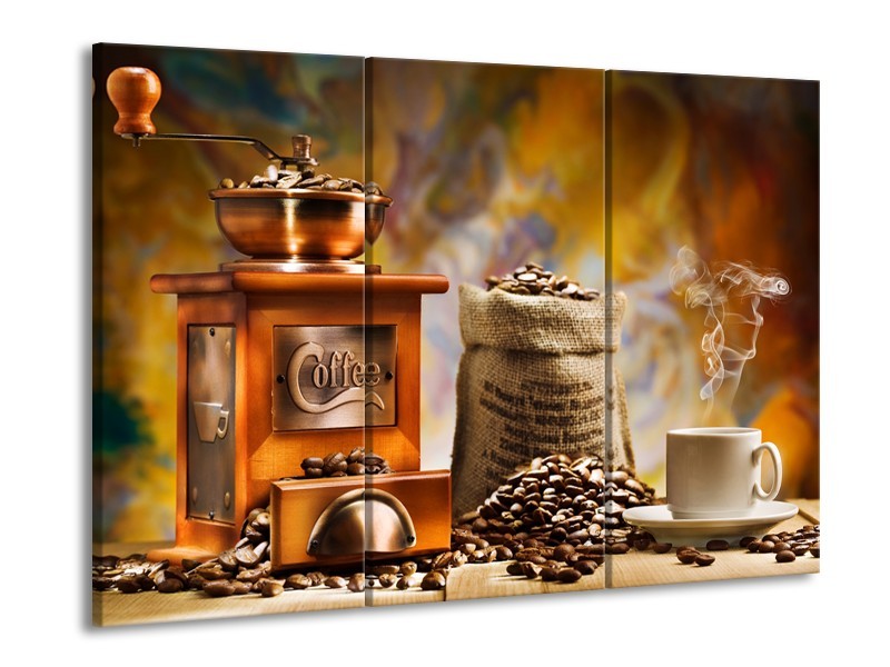 Canvas Schilderij Koffie, Keuken | Bruin, Geel, Oranje | 60x90cm 3Luik