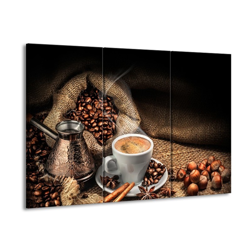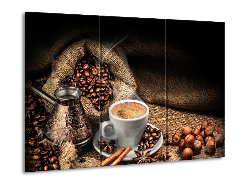 Canvas Schilderij Koffie, Keuken | Bruin, Geel, Wit | 60x90cm 3Luik