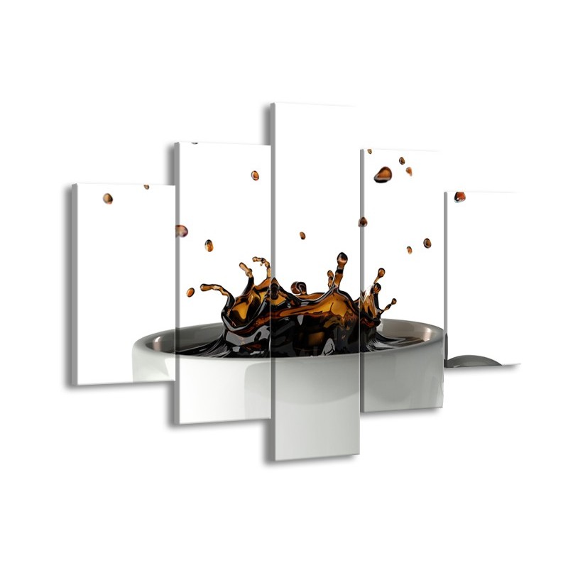 Canvas Schilderij Koffie, Keuken | Wit, Bruin | 150x105cm 5Luik