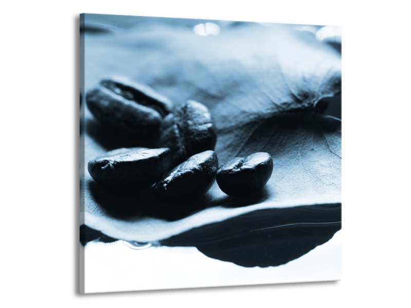 Canvas Schilderij Koffiebonen, Keuken | Blauw, Wit | 50x50cm 1Luik