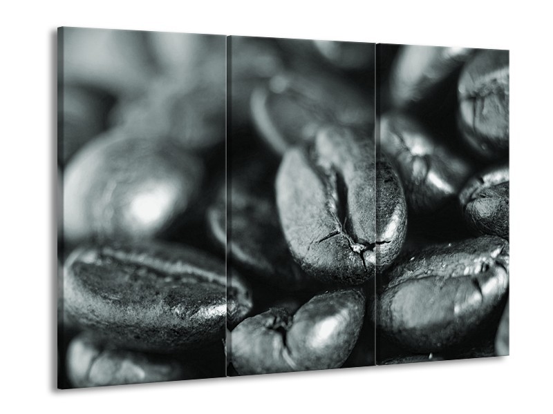 Canvas Schilderij Koffiebonen, Keuken | Grijs, Zwart, Groen | 60x90cm 3Luik