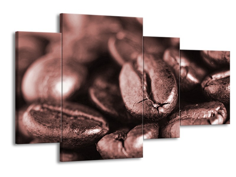 Canvas Schilderij Koffiebonen, Keuken | Rood, Bruin | 120x75cm 4Luik