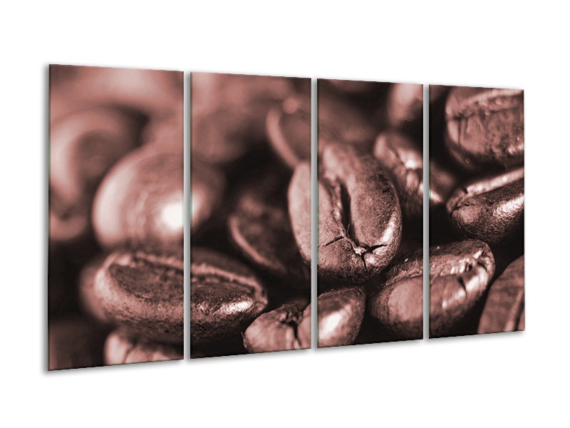 Canvas Schilderij Koffiebonen, Keuken | Rood, Bruin | 160x80cm 4Luik