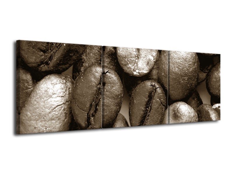 Canvas Schilderij Koffiebonen, Keuken | Sepia | 120x40cm 3Luik