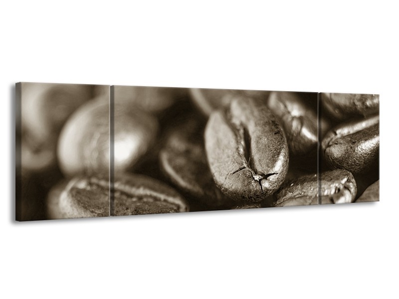Canvas Schilderij Koffiebonen, Keuken | Sepia | 170x50cm 3Luik