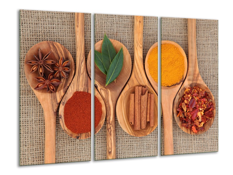 Canvas Schilderij Kruiden, Keuken | Bruin, Geel | 120x80cm 3Luik