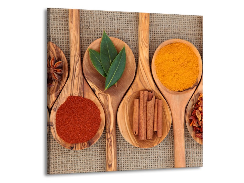 Canvas Schilderij Kruiden, Keuken | Bruin, Geel | 50x50cm 1Luik