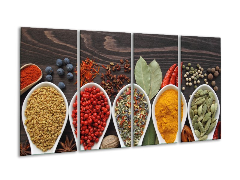 Canvas Schilderij Kruiden, Keuken | Bruin, Rood, Geel | 160x80cm 4Luik