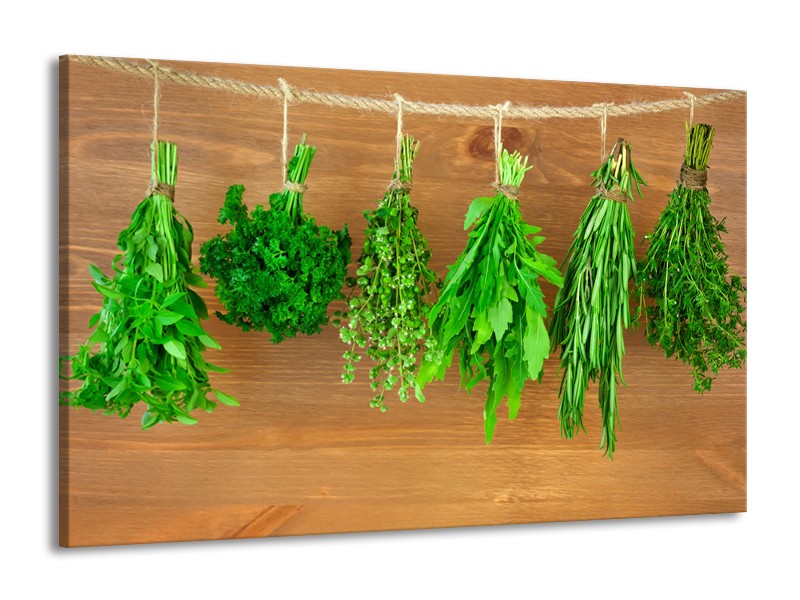 Canvas Schilderij Kruiden, Landelijk | Bruin, Groen | 140x90cm 1Luik