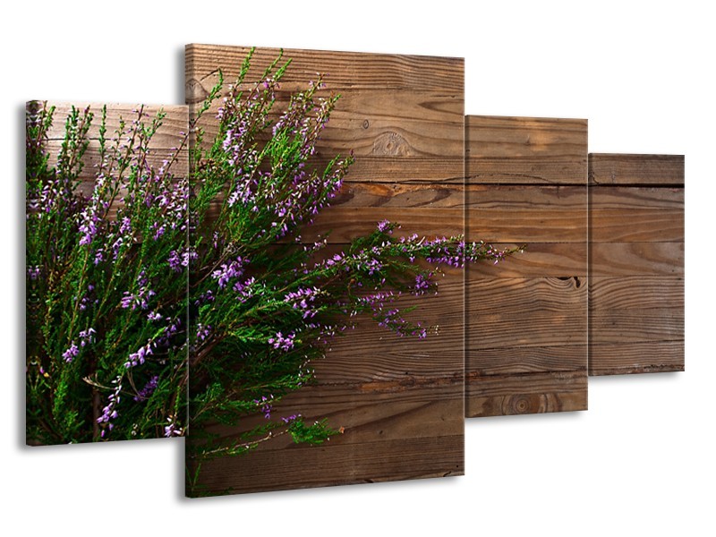 Canvas Schilderij Lavendel, Landelijk | Bruin, Paars, Groen | 160x90cm 4Luik