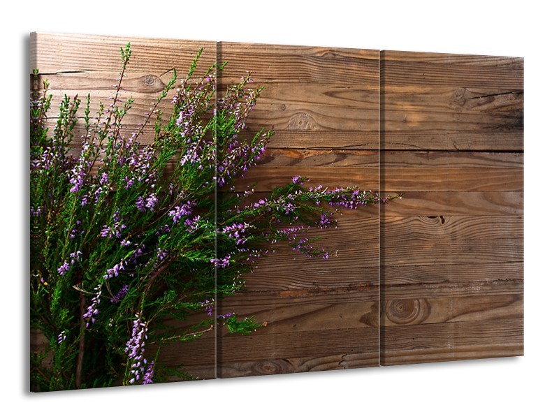 Canvas Schilderij Lavendel, Landelijk | Bruin, Paars, Groen | 165x100cm 3Luik