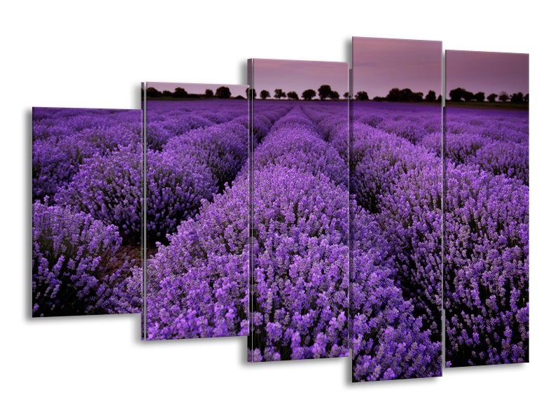 Canvas Schilderij Lavendel, Landelijk | Paars | 150x100cm 5Luik