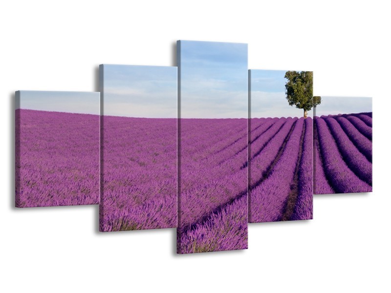 Canvas Schilderij Lavendel, Landelijk | Paars, Blauw, Groen | 150x80cm 5Luik