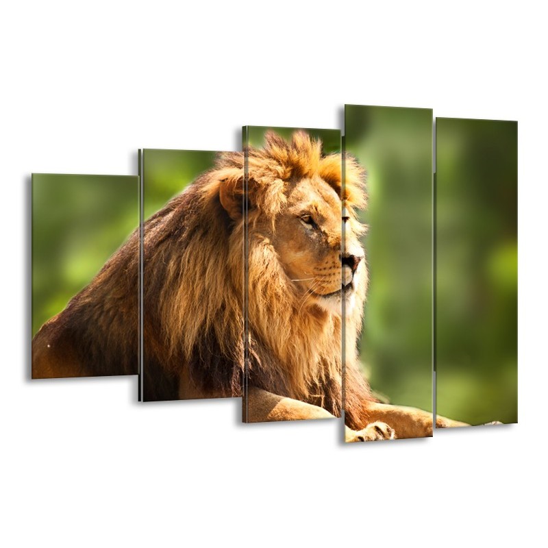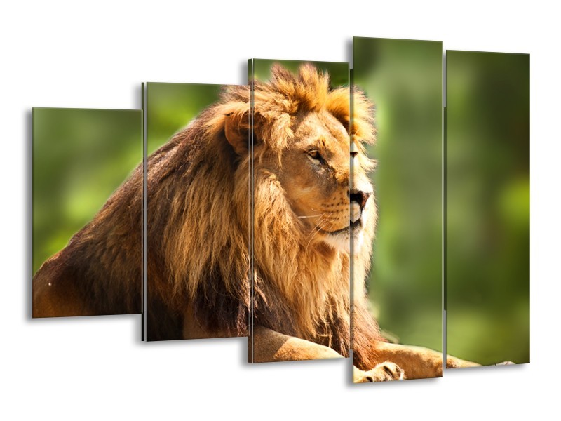 Canvas Schilderij Leeuw, Dieren | Bruin, Groen | 150x100cm 5Luik
