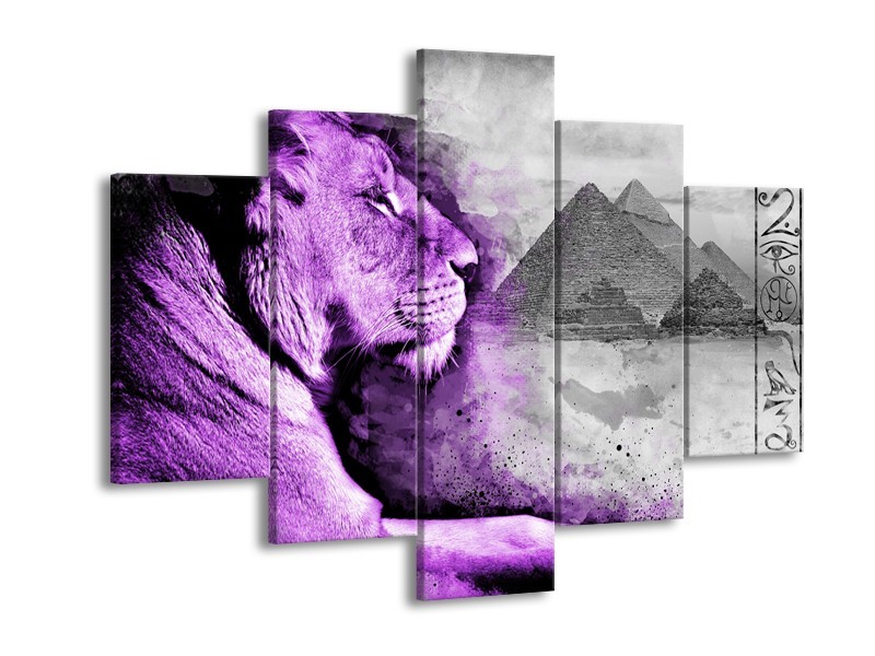 Canvas Schilderij Leeuw, Dieren | Paars, Grijs | 150x105cm 5Luik
