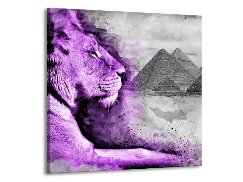 Canvas Schilderij Leeuw, Dieren | Paars, Grijs | 50x50cm 1Luik