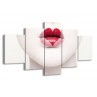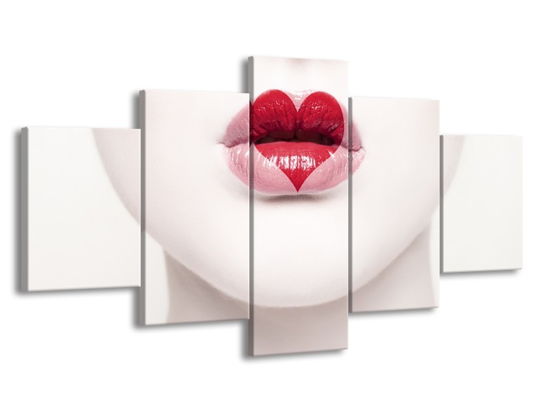 Canvas Schilderij Lippen, Hart, Gezicht | Wit, Rood, Crème | 150x80cm 5Luik