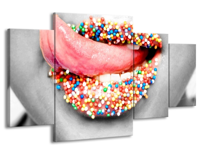 Canvas Schilderij Lippen, Tong | Grijs, Roze | 160x90cm 4Luik