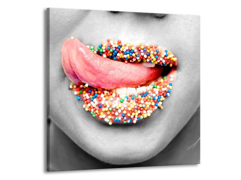 Canvas Schilderij Lippen, Tong | Grijs, Roze | 70x70cm 1Luik