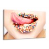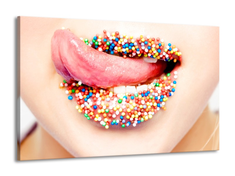 Canvas Schilderij Lippen, Tong | Roze, Crème, Blauw | 140x90cm 1Luik