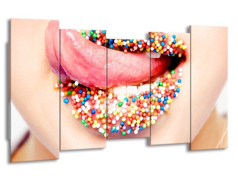 Canvas Schilderij Lippen, Tong | Roze, Crème, Blauw | 150x80cm 5Luik