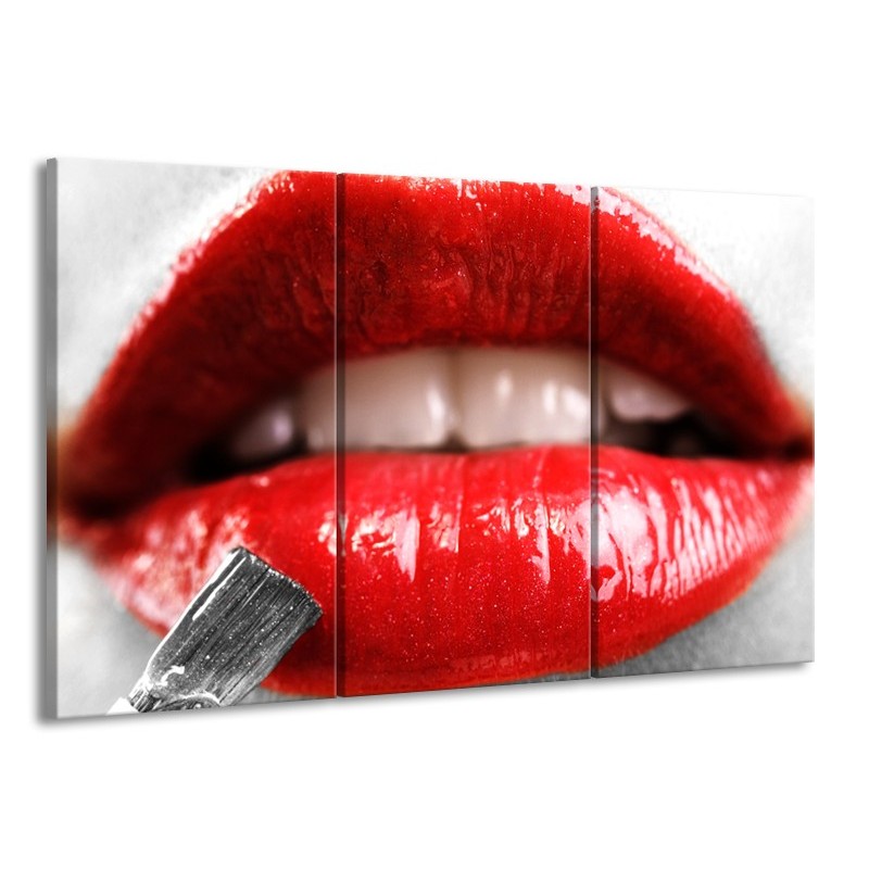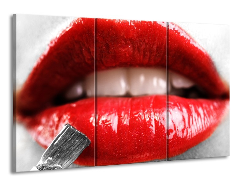 Canvas Schilderij Lippen, Vrouw | Grijs, Rood | 165x100cm 3Luik