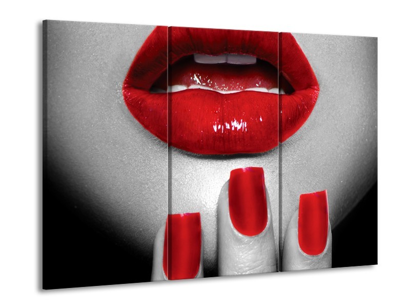 Canvas Schilderij Lippen, Vrouw | Grijs, Rood | 60x90cm 3Luik