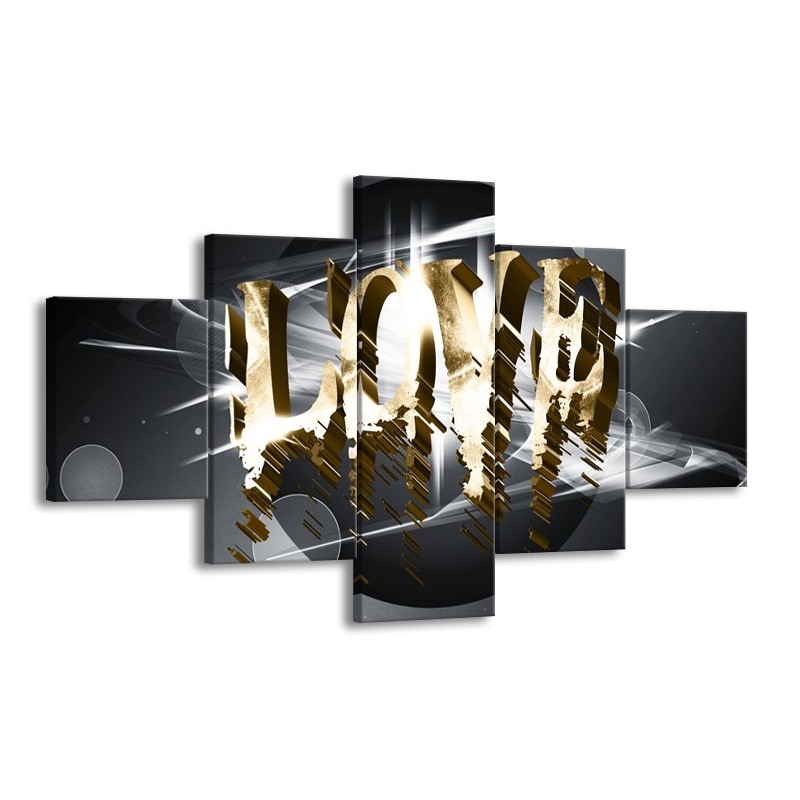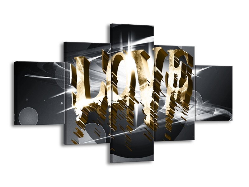 Canvas Schilderij Love, Abstract | Grijs, Crème, Goud | 125x70cm 5Luik