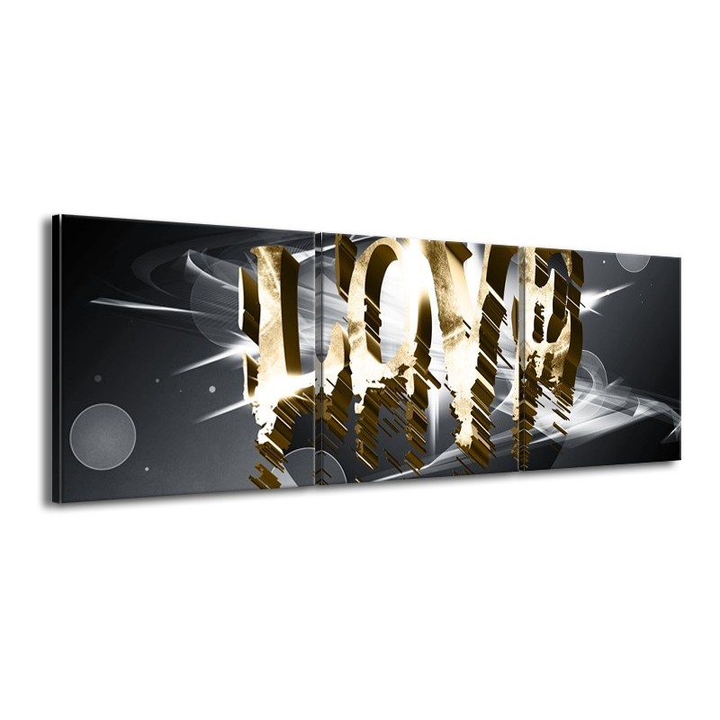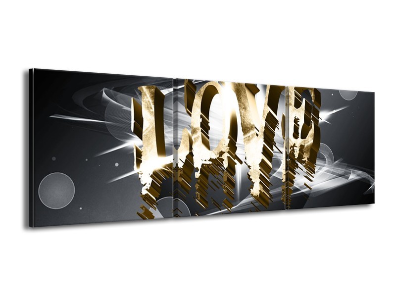 Canvas Schilderij Love, Abstract | Grijs, Crème, Goud | 150x50cm 3Luik
