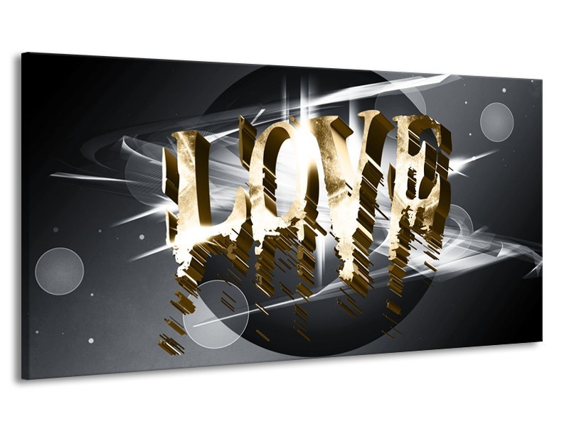 Canvas Schilderij Love, Abstract | Grijs, Crème, Goud | 170x90cm 1Luik