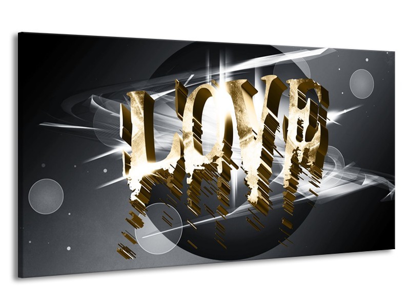Canvas Schilderij Love, Abstract | Grijs, Crème, Goud | 190x100cm 1Luik