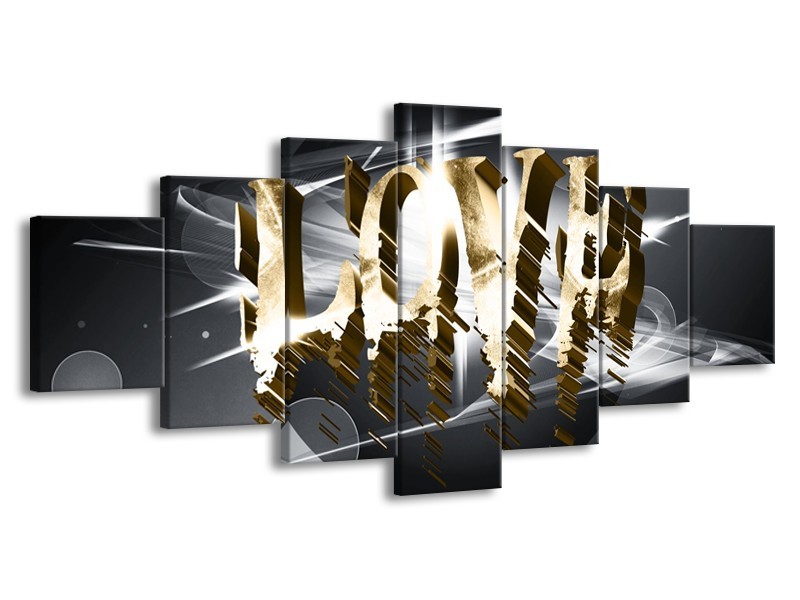 Canvas Schilderij Love, Abstract | Grijs, Crème, Goud | 210x100cm 7Luik